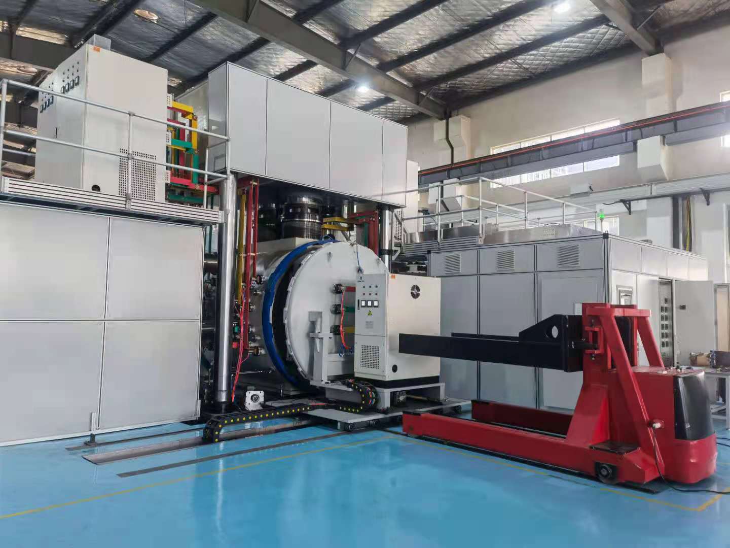 真空擴(kuò)散焊接設(shè)備由加壓主機(jī)系統(tǒng)、液壓系統(tǒng)、加熱系統(tǒng)、真空系統(tǒng)、真空室及爐門開閉系統(tǒng)、氬氣循環(huán)快冷系統(tǒng)、循環(huán)水冷卻系統(tǒng)、控制系統(tǒng)等組成。